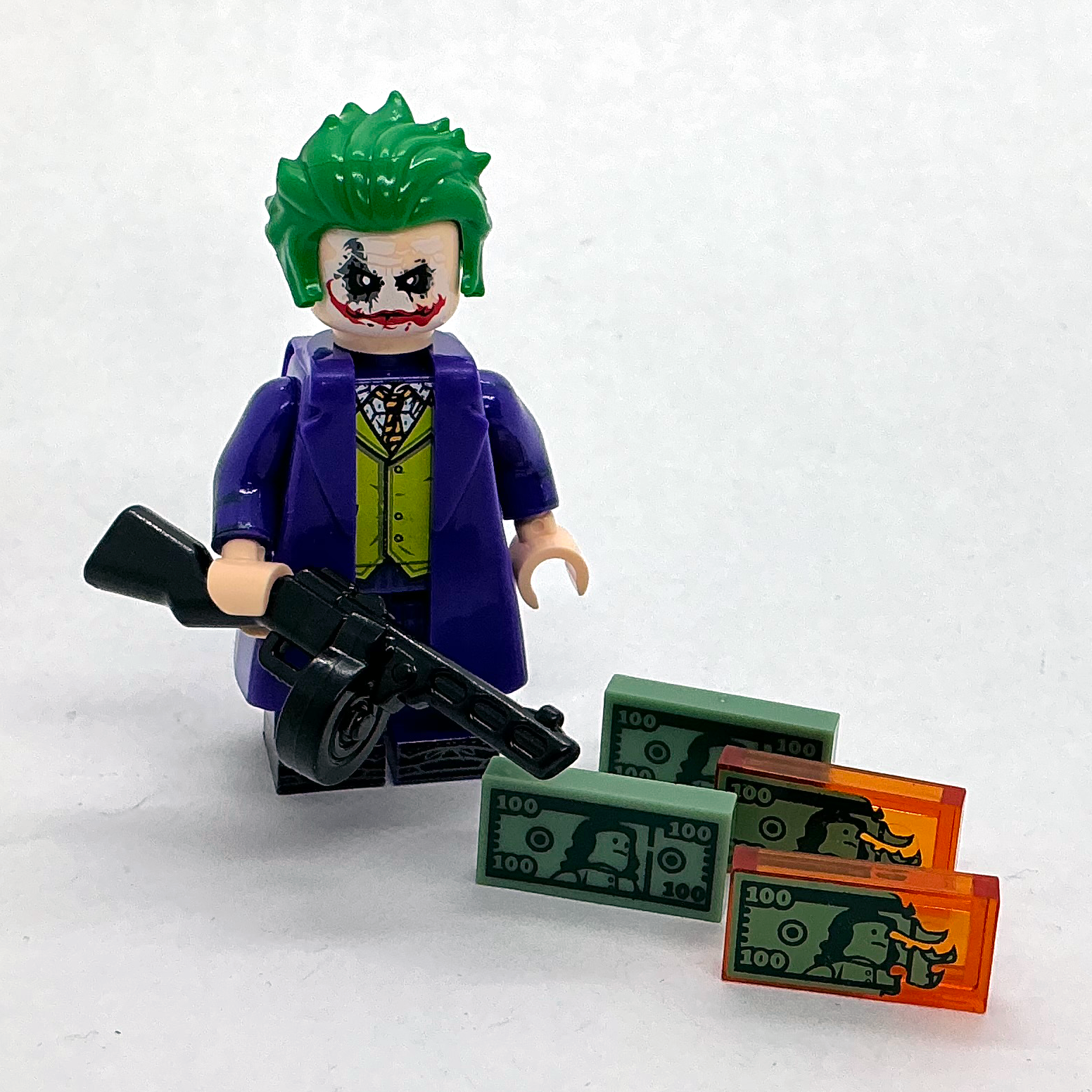 This Joker minifigure is based off his appearance in The Dark Knight movie.