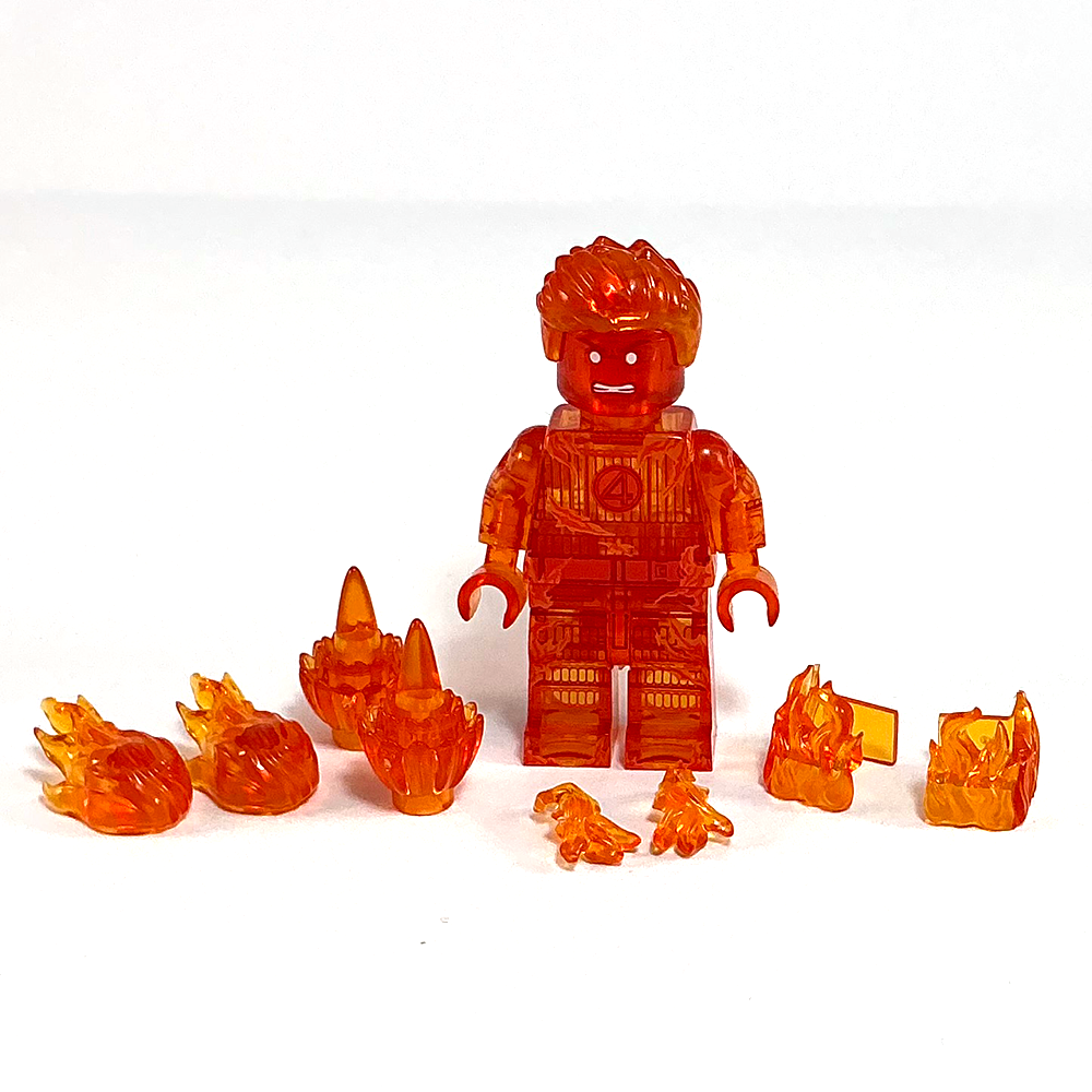 This Human Torch (Johnny Storm) minifigure is based on his appearance in the 2025 movie The Fantastic Four: First Steps.