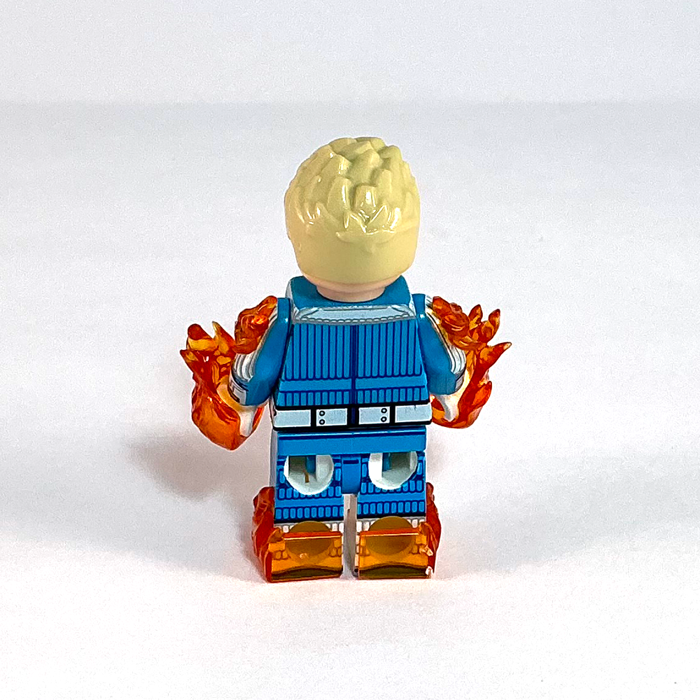 This Johnny Storm (Human Torch) minifigure is based on his appearance in the 2025 movie The Fantastic Four: First Steps.