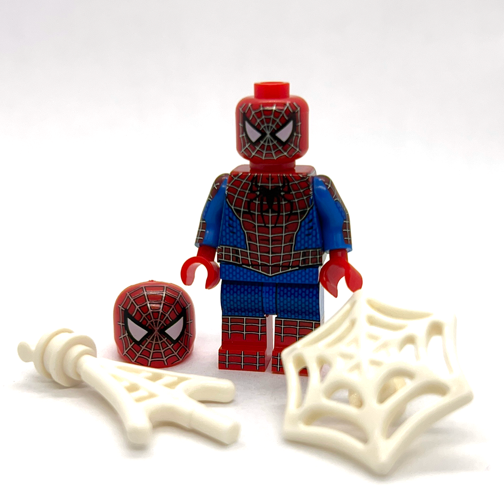 This Spider-man minifigure is styled after his appearance in the 2002 movie Spider-man.