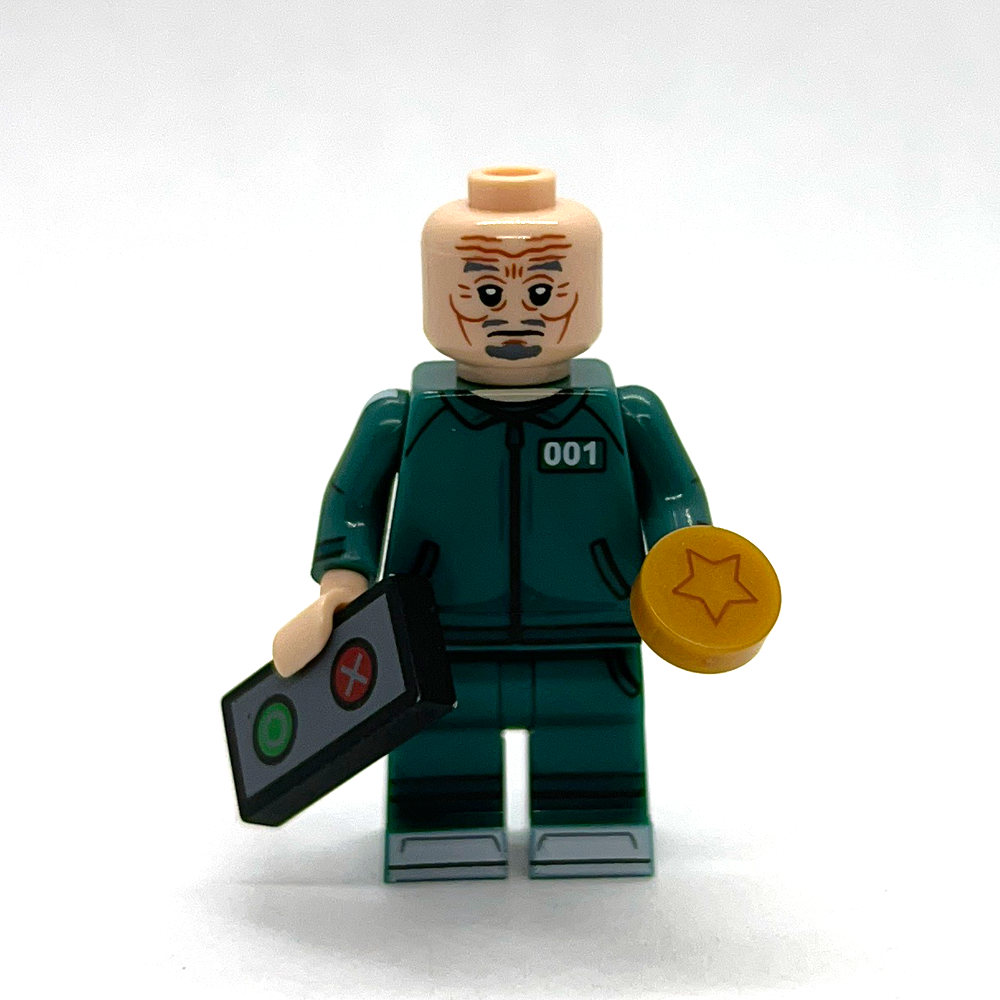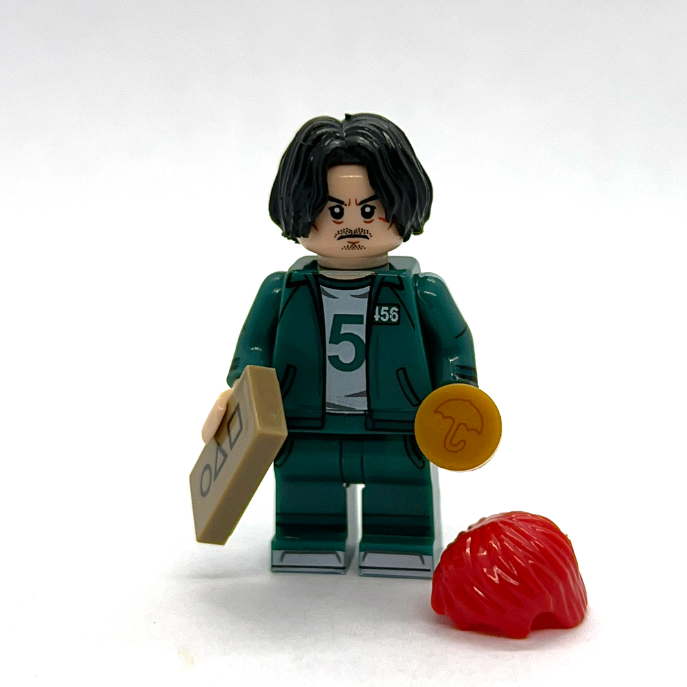 - 1x Player 456 minfig w/Dalgona Cookie tile, Business Card tile, and alternate hair