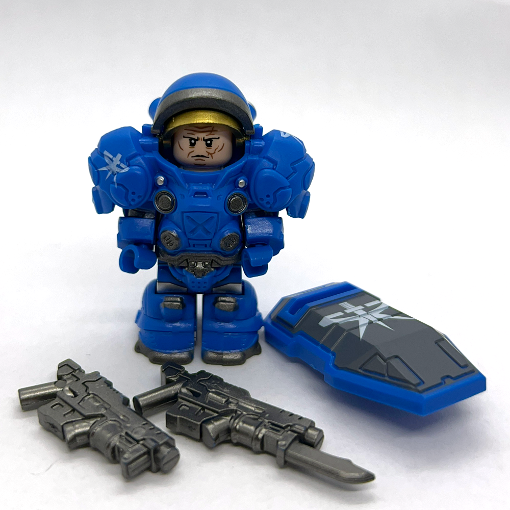 This Starcraft Marine minifigure is based on their various appearances in the Starcraft video games. Featuring extensive custom molded armour and weapons this is a great addition to any fan’s collection!
